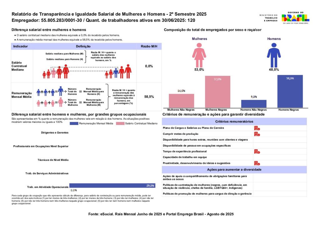 Em cumprimento à Lei nº 14.611/2023, divulgamos o Relatório de Transparência e Igualdade Salarial entre Mulheres e Homens – 2º Semestre de 2025.